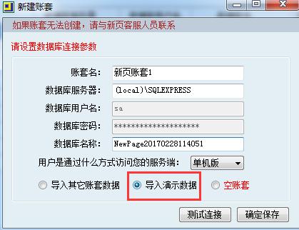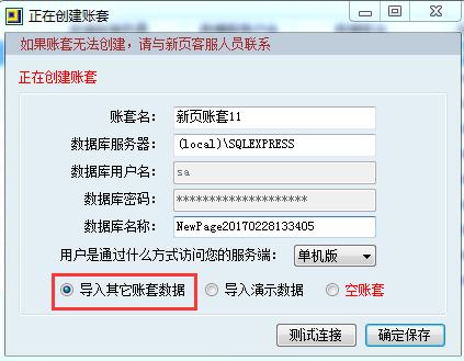此操作会覆盖原有的test数据,通过创建新账套,导入演示数据,即可恢复旧账套。