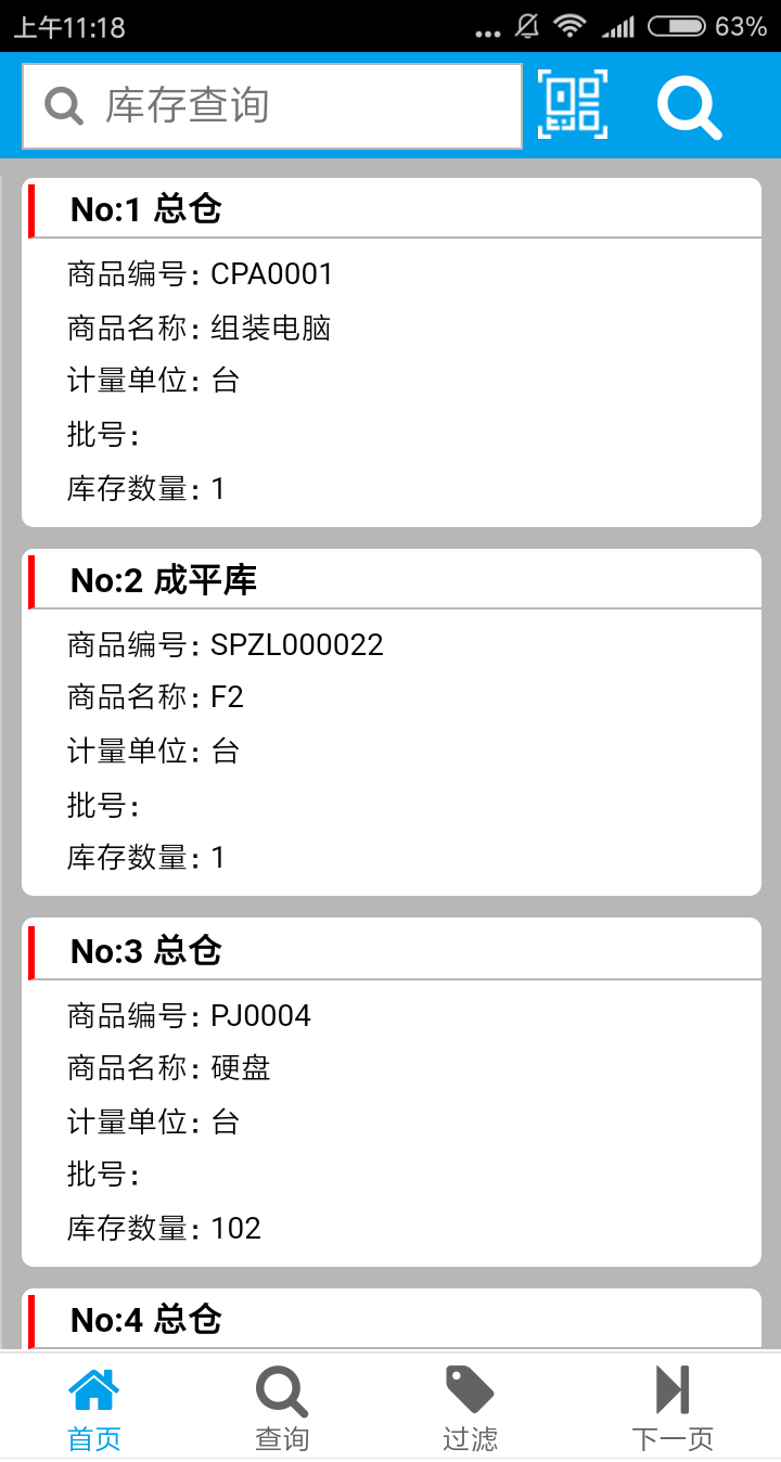 支持扫码查询库存、产品信息、出入库记录等;