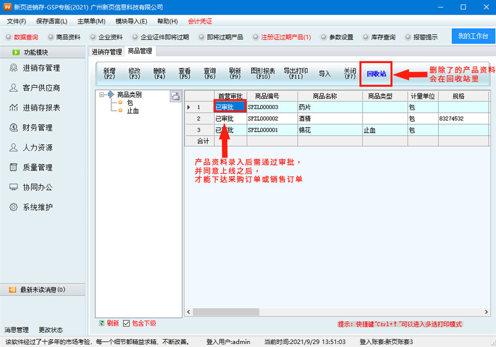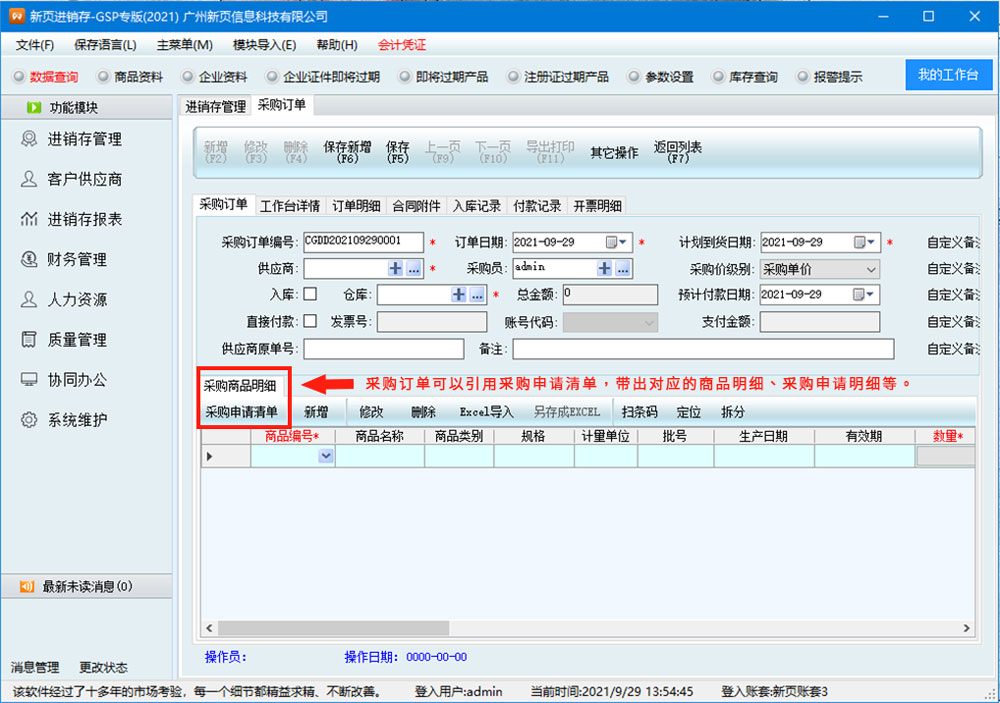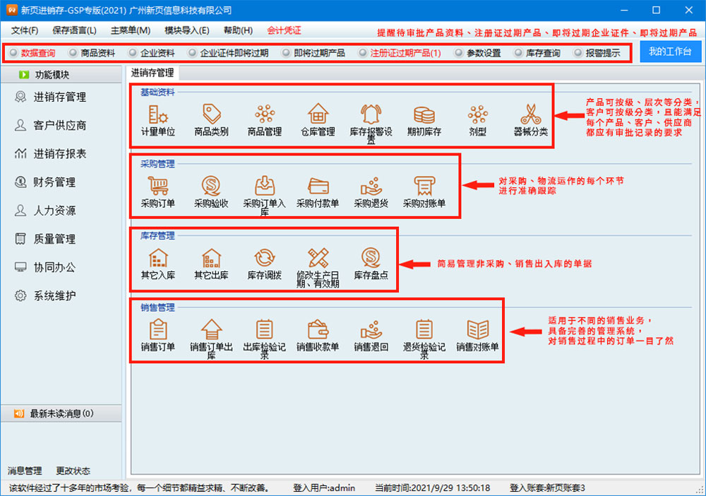 新页医疗器械ERP适用于医疗器械等批发、零售行业,从药品管理和人员、设备、采购、验收入库、储存、销售、出库等环节,建立一套完整的质量保证体系。软件包括进销存管理、收银台销售管理、人力资源管理、财务管理、协同办公、报表中心、系统维护等子系统。软件界面设计简洁、美观,具备人性化的操作流程、完整的视频教学和文本教学。